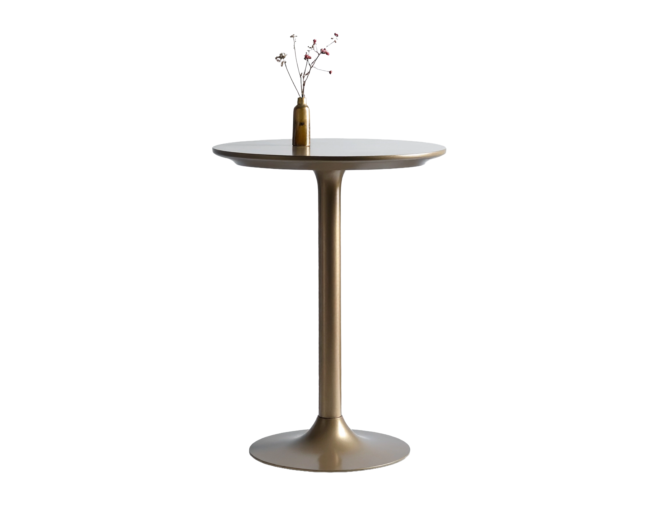 Firefly_a tall round table with a small flower vase 141329